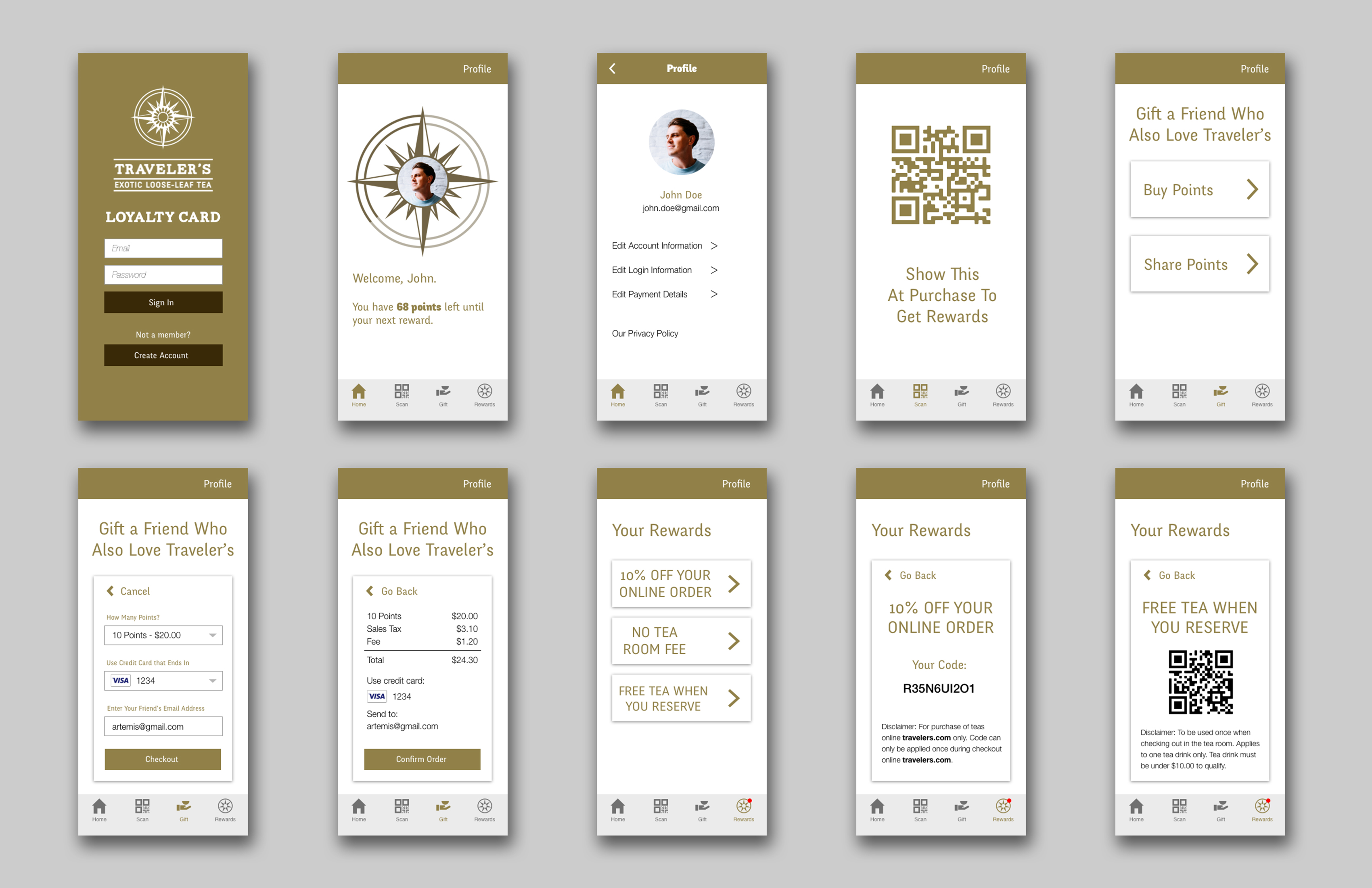 The long-term goal is to keep them coming back to purchase teas or to have an enjoyable experience at one of their tearooms. Traveler's Tea Loyalty Card app serves that purpose. Its reward system allow customers to get more from purchasing their products.