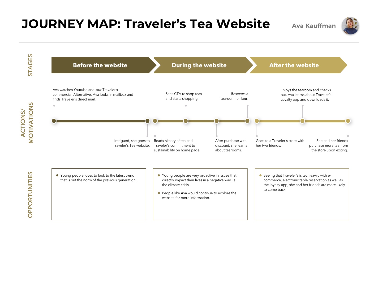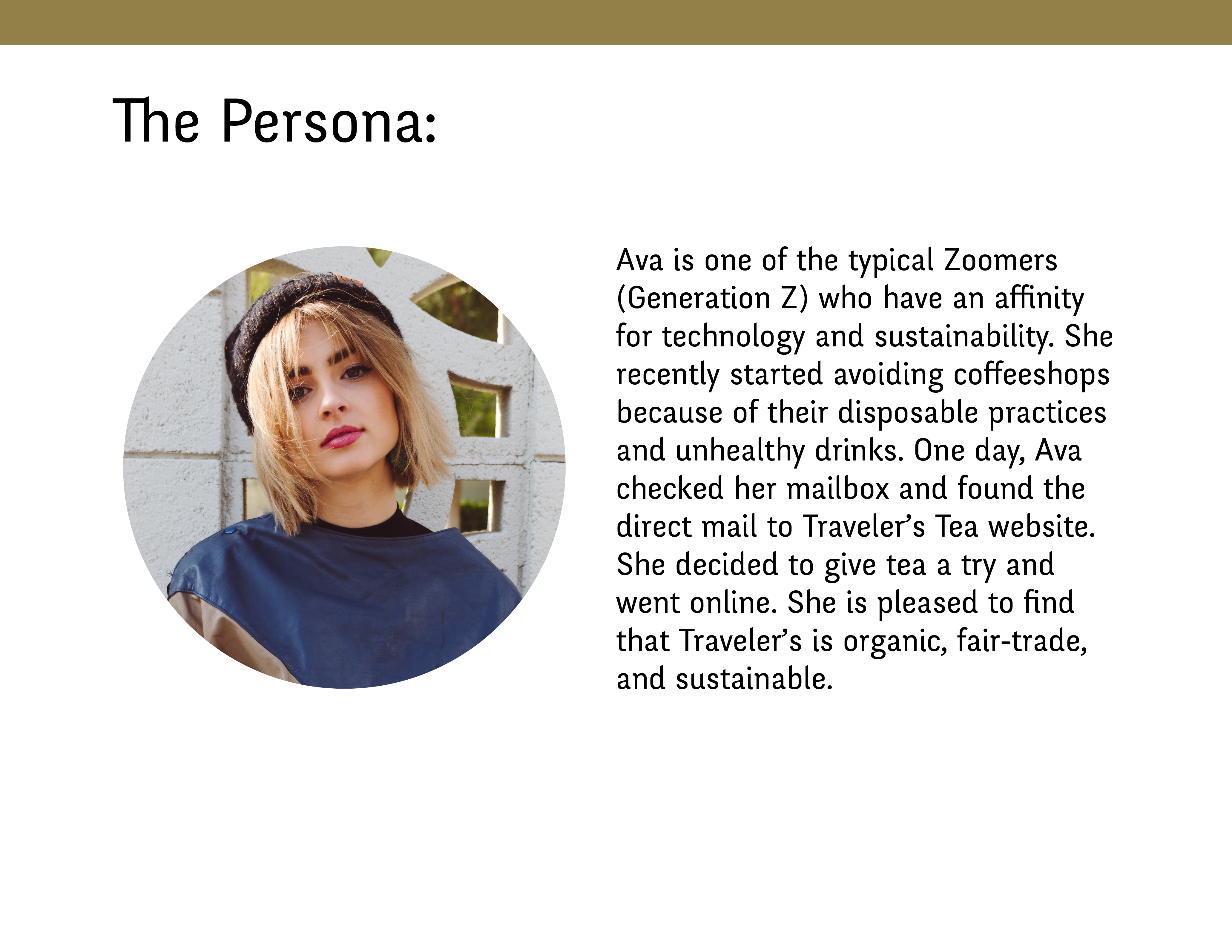 While coffeeshops are popular in America, Traveler's aims to break the mold with the young generation as the target audience and making tea cool with its earthy, vintage design after the Age of Discovery period. A sustainability statement in aspects of its business would also attract the young generation.