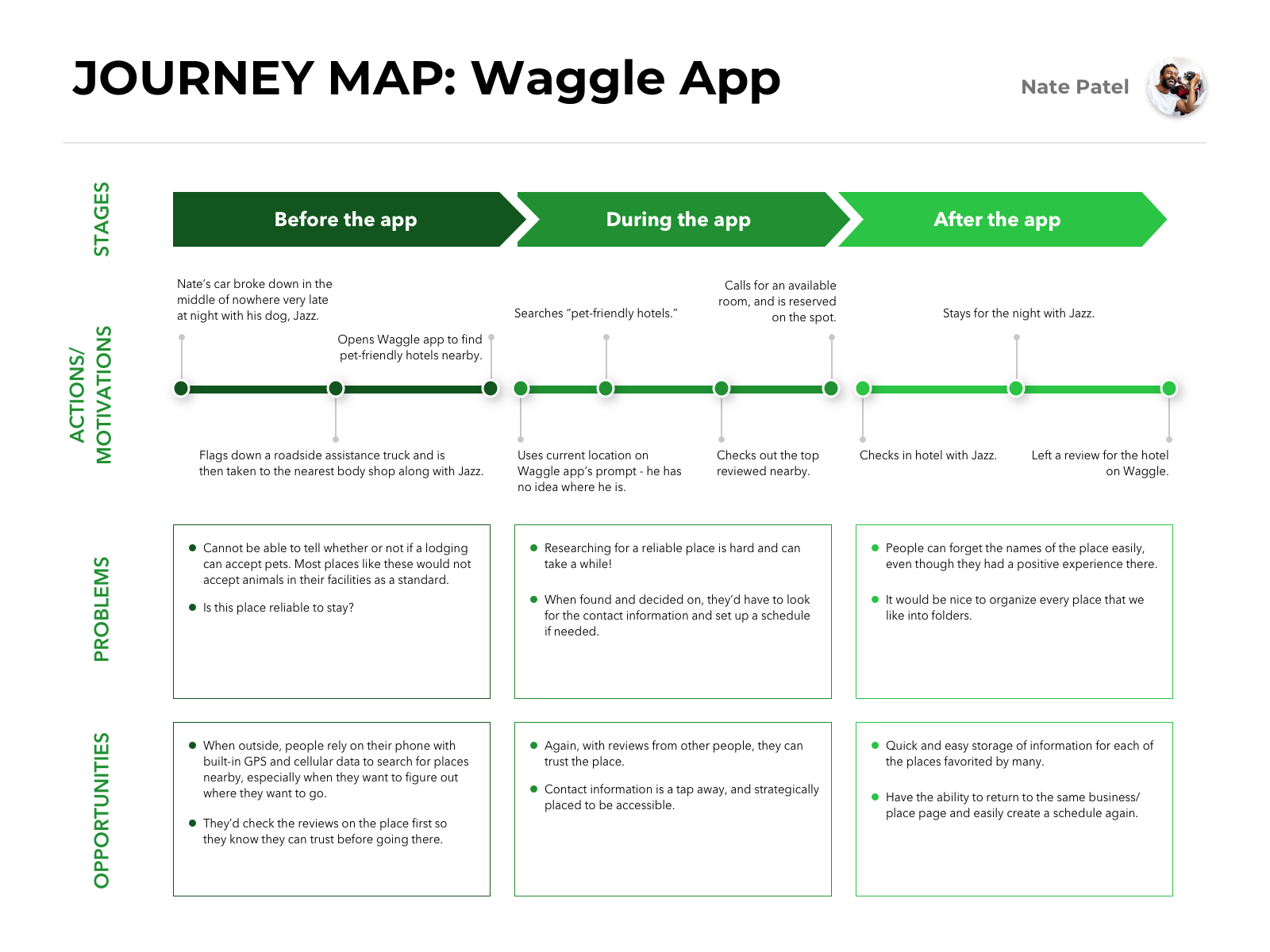 Waggle is a review-based website and app for pet owners. The mission of this project is to assist pet owners in meeting the needs of their beloved pets. In other words, with the assistance of Waggle, it would take them only a couple steps to research a place they plan on visiting with their pets when normally it would take a hefty amount of time to determine if it’s friendly to bring them along and if the place is well-received for its service.