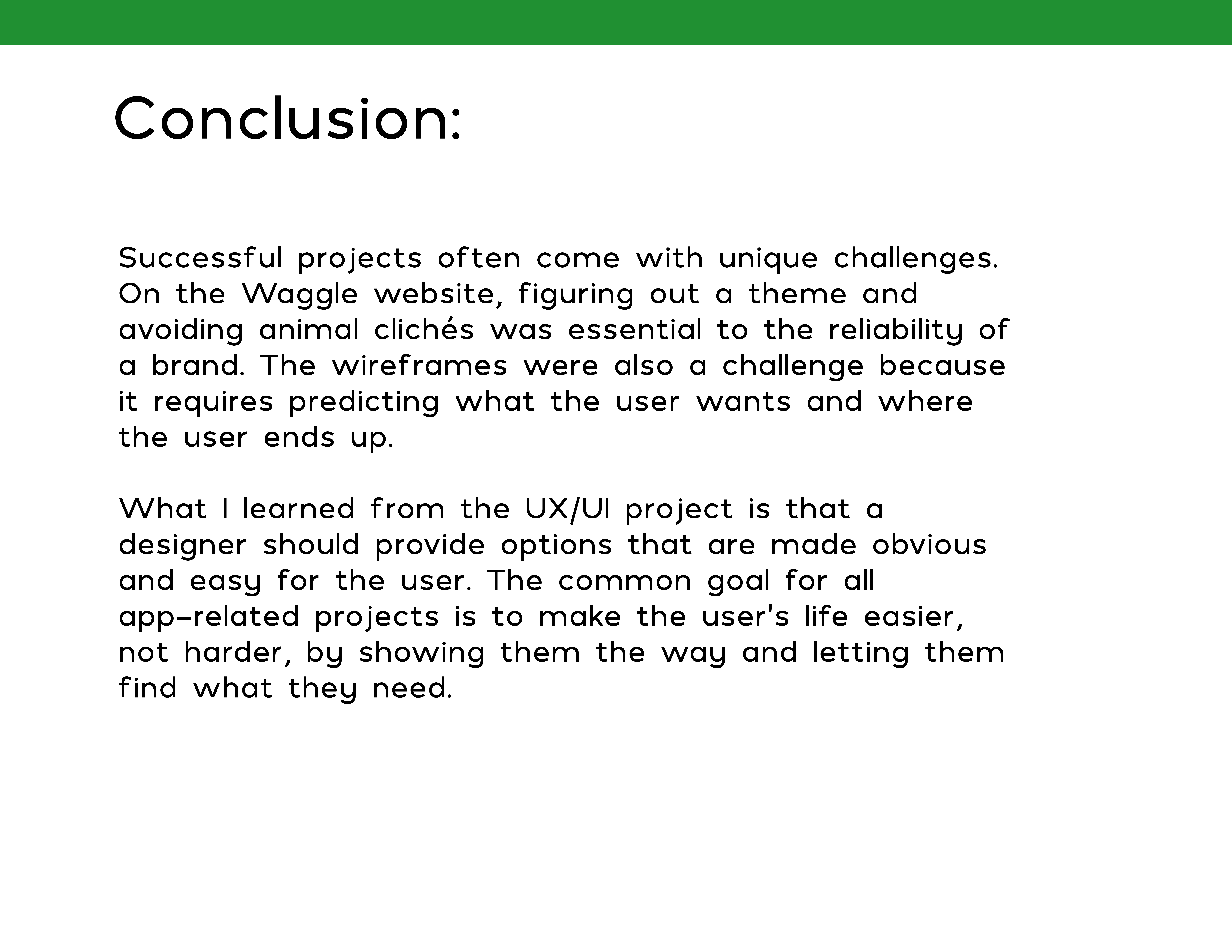 Once more, Waggle is a resource for pet owners to look up a place and read the reviews of other owners as well as providing their own. When it comes to pets, the theme would be playful and welcoming.